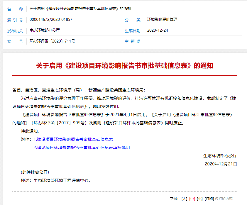 建設(shè)項(xiàng)目環(huán)境影響報(bào)告書審批基礎(chǔ)信息表于2021年4月1日啟用