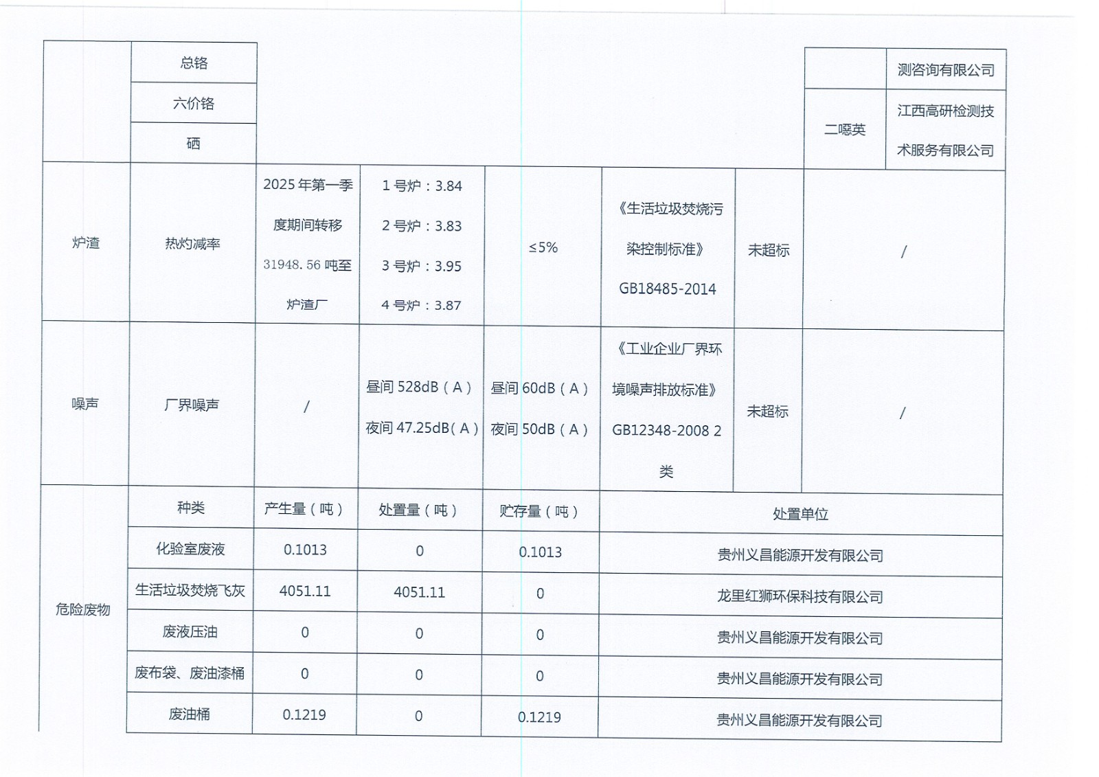 貴陽中電環(huán)保發(fā)電有限公司環(huán)境信息公示(2025年1季度)